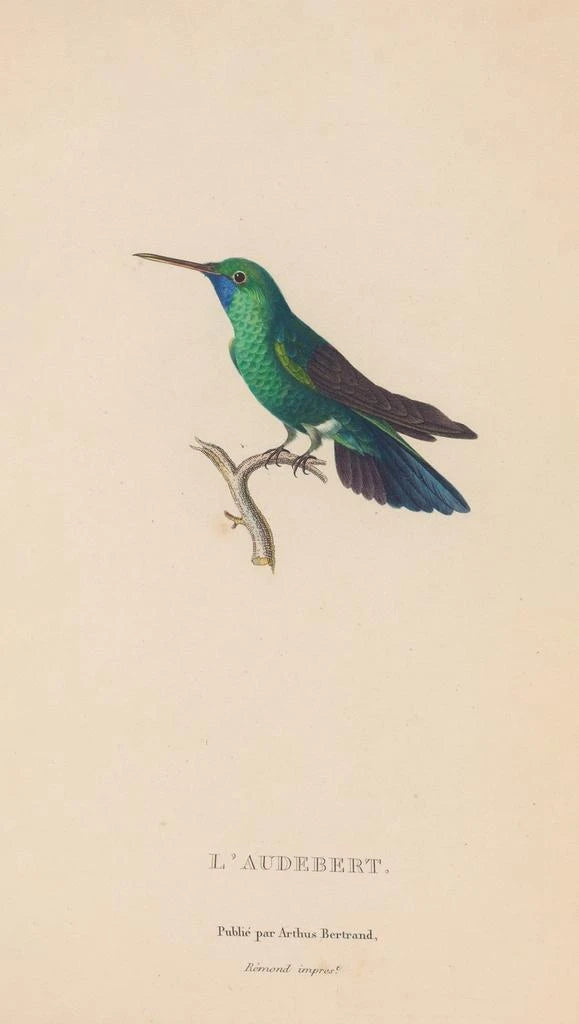René Primevère Lesson, naturalista i ornitolog XIX wieku, umiejętnie łączył naukę z sztuką w swoich pracach. Aktywny w okresie, gdy badanie ptaków przeżywało rozkwit, był pod wpływem odkryć swoich współczesnych oraz eksploracji botanicznych i zoologicznych. Jego praca przyczyniła się do pogłębienia wiedzy o gatunkach ptasich, prezentując je w sposób artystyczny. Lesson potrafił uchwycić istotę tych kolibrów, czyniąc z jego wydruków artystyczne i naukowe odniesienia. Jego dziedzictwo trwa, świadcząc o znaczeniu dokładnej obserwacji i wiernego odwzorowania natury.