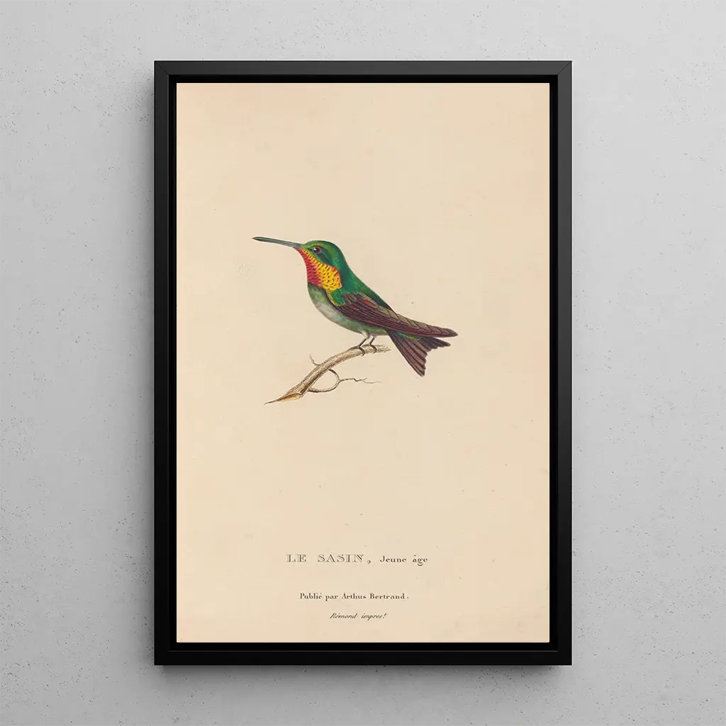 Reprodukcja Histoire naturelle des oiseaux-mouches Pl68 to cenny dodatek do każdego wnętrza, niezależnie od tego, czy to salon, biuro czy sypialnia. Jakość druku i dbałość o szczegóły sprawiają, że jest to fascynujący obraz przyciągający wzrok i wzbogacający przestrzeń. Wybierając tę płótno, wprowadzasz odrobinę natury i elegancji do swojego otoczenia. Estetyczna atrakcyjność tego dzieła tkwi w jego zdolności do przywoływania piękna ptaków-much, tworząc spokojną i inspirującą atmosferę w Twoim wnętrzu.