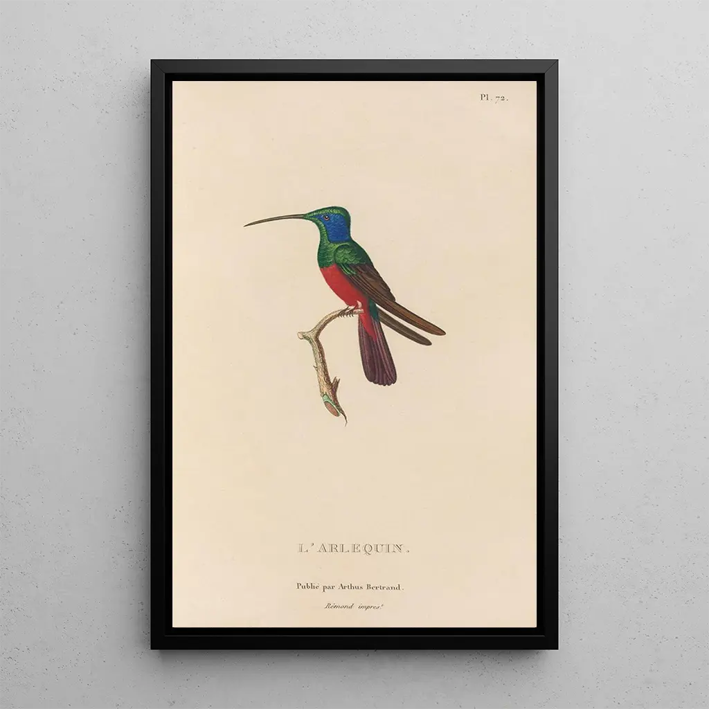 La reproduction de "Histoire naturelle des oiseaux-mouches Pl73" constitue un ajout idéal à toute décoration intérieure, que ce soit dans un salon, un bureau ou une chambre. Avec sa palette de couleurs vibrantes et son illustration détaillée, ce tableau apporte une touche de fraîcheur et de dynamisme à votre espace. Sa qualité de reproduction garantit une fidélité à l'œuvre originale, permettant de profiter de l'esthétique raffinée de Lesson sans compromis. En choisissant cette toile, vous offrez à votre intérieur une pièce d'art qui évoque la beauté de la nature tout en enrichissant votre décor d'une note d'élégance.