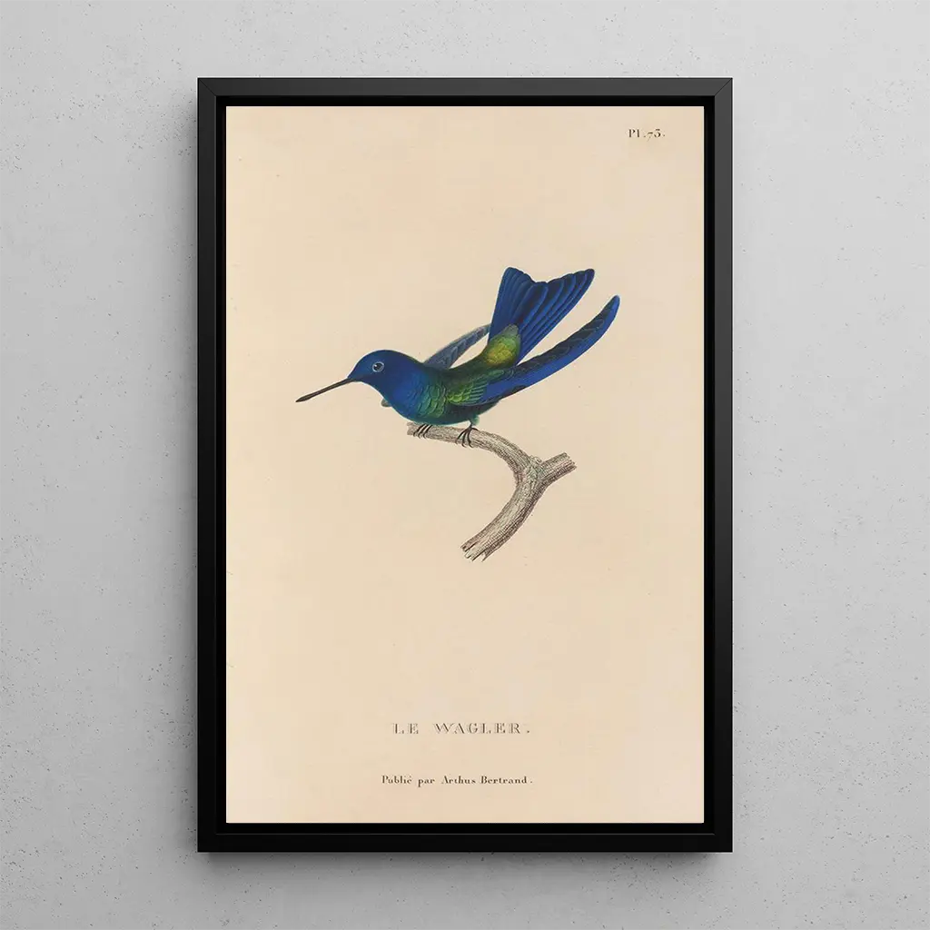 Reproduction "Histoire naturelle des oiseaux-mouches Pl74" autorstwa René Primevère Lesson przenosi nas do świata, w którym każdy ptak-mucha jest eksplozją kolorów i kształtów. Delikatne odcienie upierzenia, od pastelowych po jaskrawe barwy, są oddane z taką finezją, że wydają się niemal namacalne. Harmonijna kompozycja tej płótna, gdzie każdy ptak jest starannie umieszczony, tworzy atmosferę lekkości i ruchu. To dzieło jest prawdziwym świętem natury, zachęcającym widza do docenienia efemerycznej piękności tych skrzydlatych stworzeń.