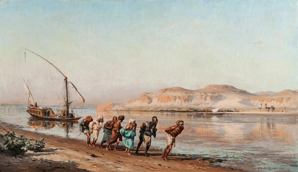Holowanie na Nilu - Frederick Arthur Bridgman
