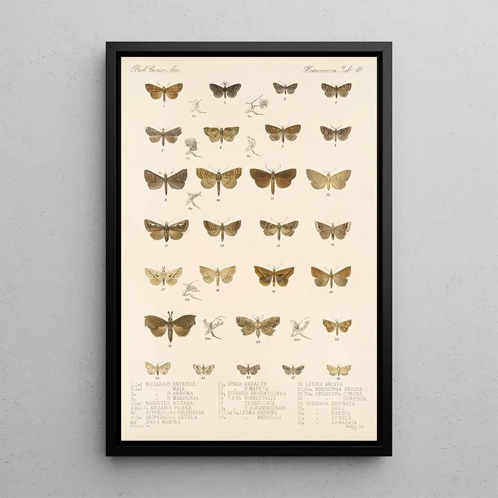 Ta druk artystyczny Insecta Lepidoptera Heterocera Pl 040 przenosi nas w fascynujący świat, w którym piękno motyli ukazuje się z blaskiem. Żywe kolory i drobiazgowe szczegóły skrzydeł tworzą atmosferę jednocześnie delikatną i dynamiczną. Technika ilustracji naukowej, łącząca precyzję i sztukę, pozwala oddać hołd różnorodności gatunków. Każdy element jest starannie opracowany, oferując zaproszenie do obserwacji i kontemplacji tych efemerycznych stworzeń. Ten obraz jest prawdziwą hołd dla natury, uchwycającą istotę entomologii.
