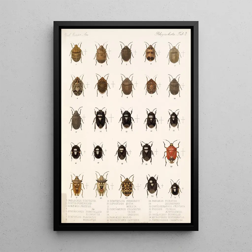 Reprodukcja "Insecta Rhynchota Hemiptera Heteroptera Pl 02" to idealny wybór dekoracyjny do różnych przestrzeni, czy to salonu, biura czy sypialni. Jego wyrafinowana estetyka i fascynujące detale sprawiają, że jest to obraz, który wzbudza ciekawość i rozmowy. Jakość druku zapewnia niezwykłą wierne oddanie kolorów i szczegółów oryginalnego dzieła, gwarantując satysfakcjonujące wrażenia wizualne. Wkomponowując tę płótno w swoją dekorację, wprowadzasz odrobinę elegancji i kultury, jednocześnie celebrując piękno natury i nauki — to prawdziwy atut dla każdego miłośnika sztuki i różnorodności biologicznej.