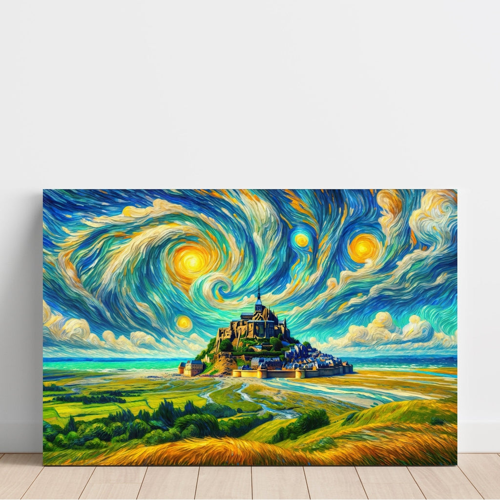 Le Mont Saint-Michel w stylu Van Gogha | Sztuczna inteligencja | Druk artystyczny Obraz Dekoracja ścienna kopia