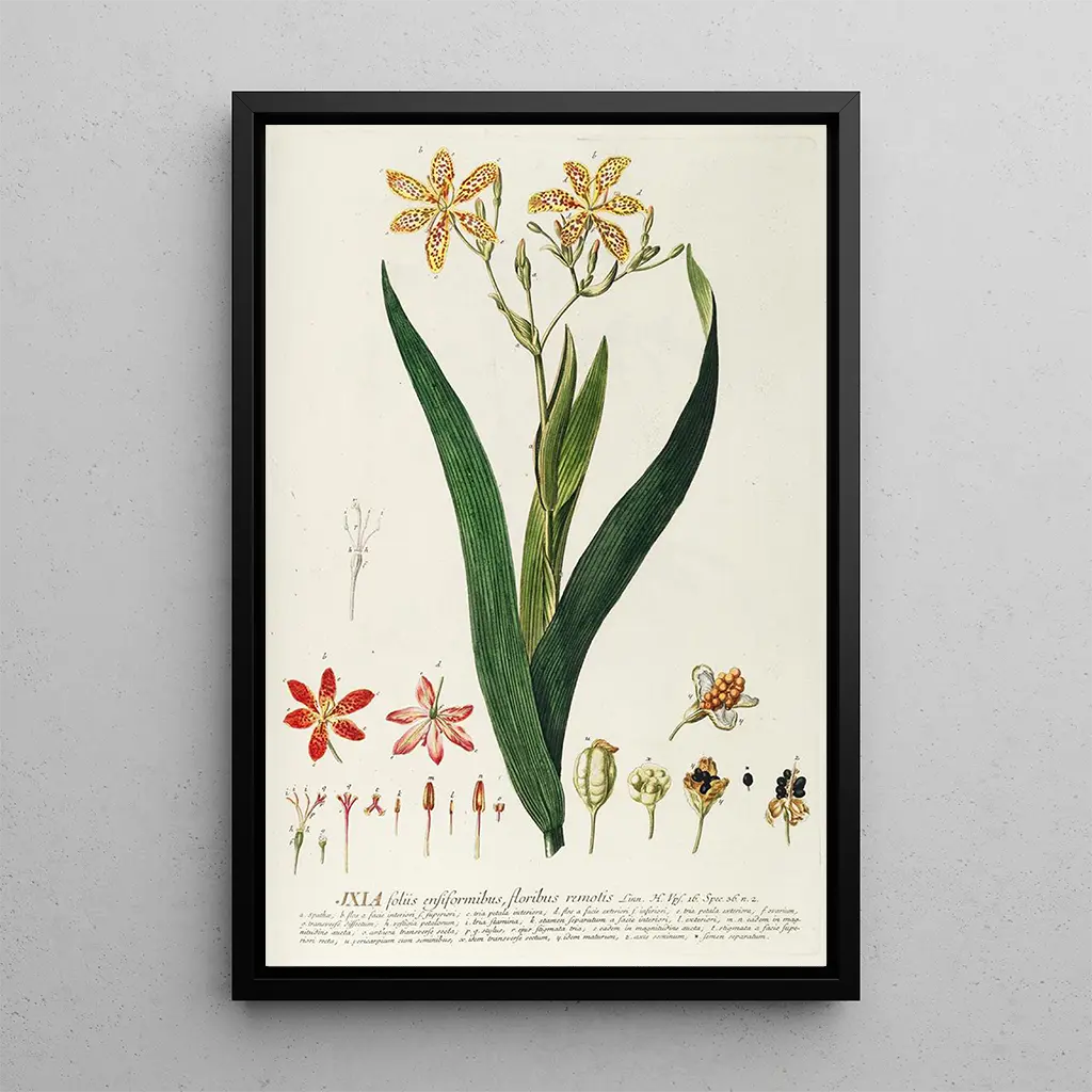 Georg Dionysius Ehret, działający w XVIII wieku, jest ikoną ilustracji botanicznej. Pochodzący z Niemiec, potrafił połączyć naukę i sztukę, stając się pionierem w przedstawianiu roślin. Pod wpływem postępów naukowych swojego czasu, współpracował z renomowanymi botanikami, co przyczyniło się do wzrostu jego rozpoznawalności. Druk artystyczny Ixia wpisuje się w tę tradycję doskonałości, ilustrując zarówno piękno kwiatów, jak i ich znaczenie naukowe. Ehret pozostawił trwałe dziedzictwo, czyniąc swoje dzieła nieodzownymi odniesieniami.