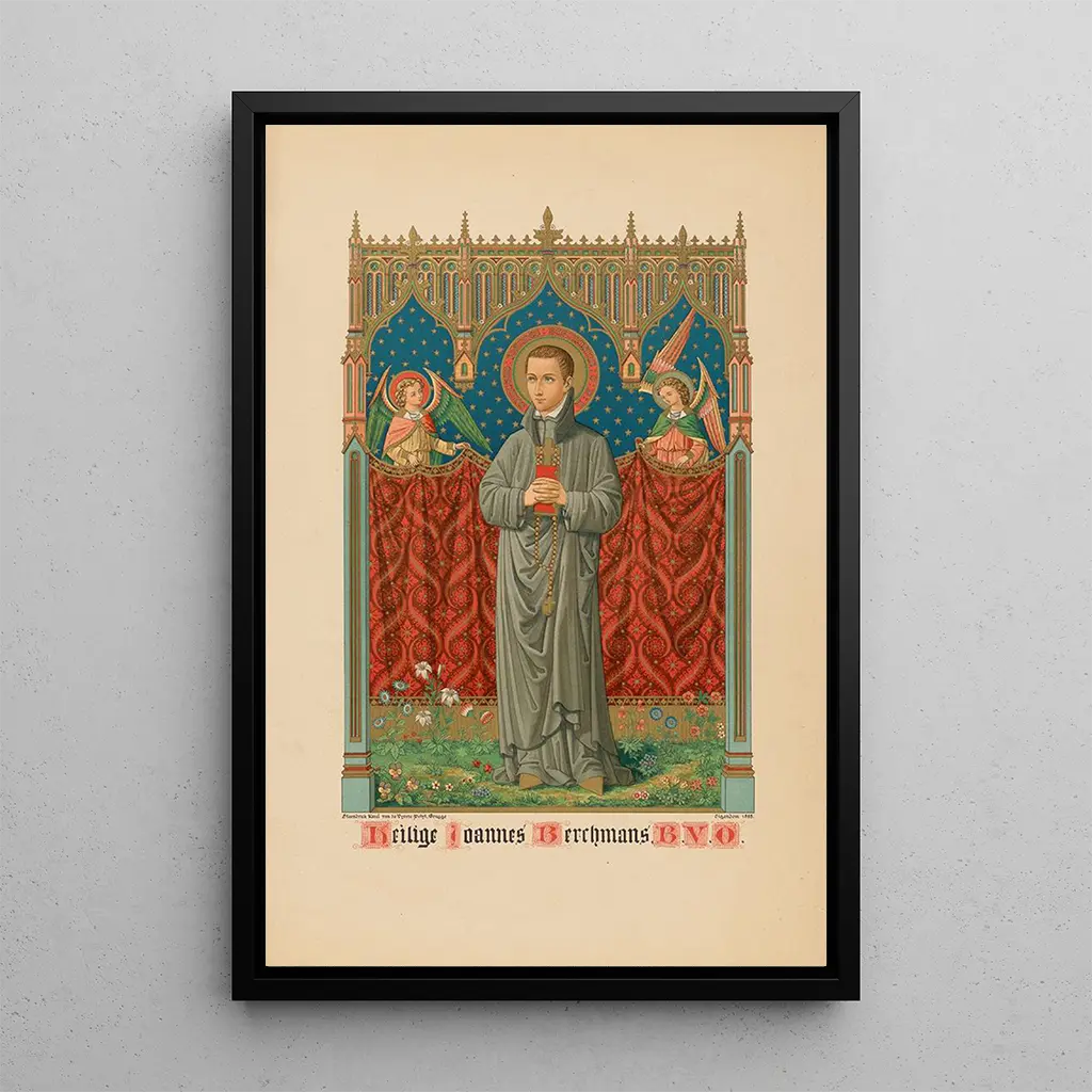 Druk artystyczny "Jan Berchmans" Jacquesa Petyta ukazuje młodość i gorliwość duchową tego jezuitów świętego. Obraz przedstawia młodego mężczyznę o zdeterminowanym spojrzeniu, ubranego w habit religijny, otoczonego symbolami swojej pobożności. Żywe kolory i precyzyjne detale, typowe dla sztuki Petyta, tworzą żywą i inspirującą atmosferę. Światło oświetlające twarz Jana Berchmans podkreśla jego zaangażowanie i pasję do wiary, czyniąc to dzieło prawdziwym świętem młodości w służbie Bogu.