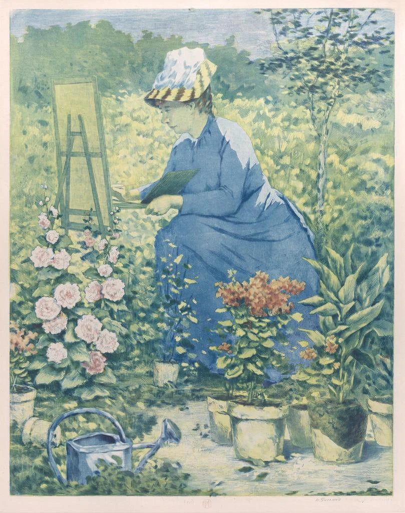 Jeanne Gonzalès malująca w ogrodzie - Henri-Charles Guérard