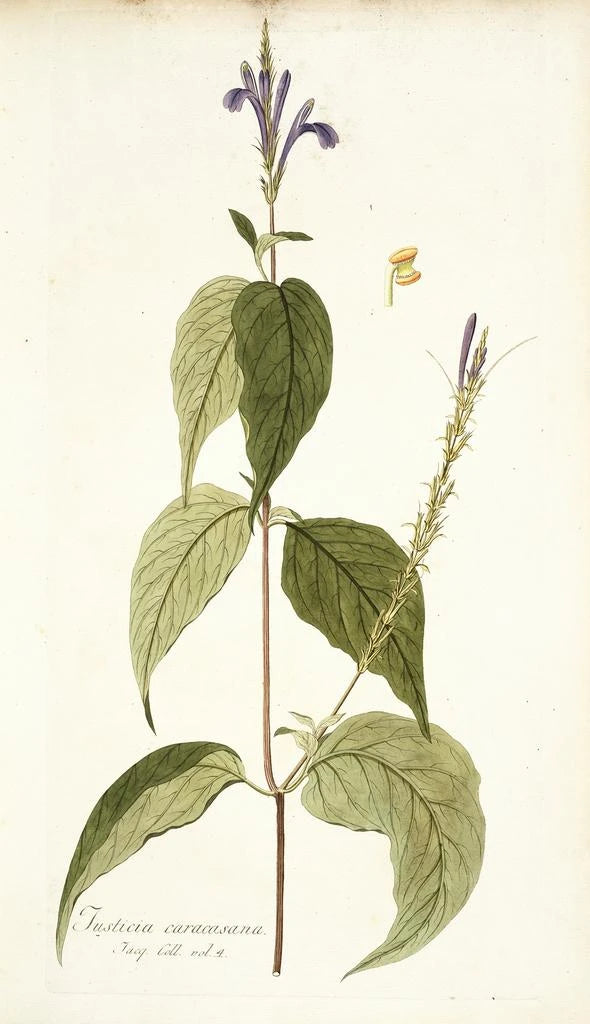 Nikolaus Joseph Freiherr von Jacquin, botanik i artysta XVIII wieku, zaznaczył swoją epokę precyzyjnymi i poetyckimi ilustracjami botanicznymi. Jego podróże po Ameryce Południowej umożliwiły mu odkrycie wielu roślin, w tym Justicia caracasana. Pod wpływem ówczesnych nurtów naukowych, Jacquin umiał połączyć sztukę i naukę, przyczyniając się do rozwoju wiedzy botanicznej. Jego dzieło jest świadectwem zachwytu nad naturą i znaczenia jej ochrony, czyniąc go ikoną ilustracji botanicznej.