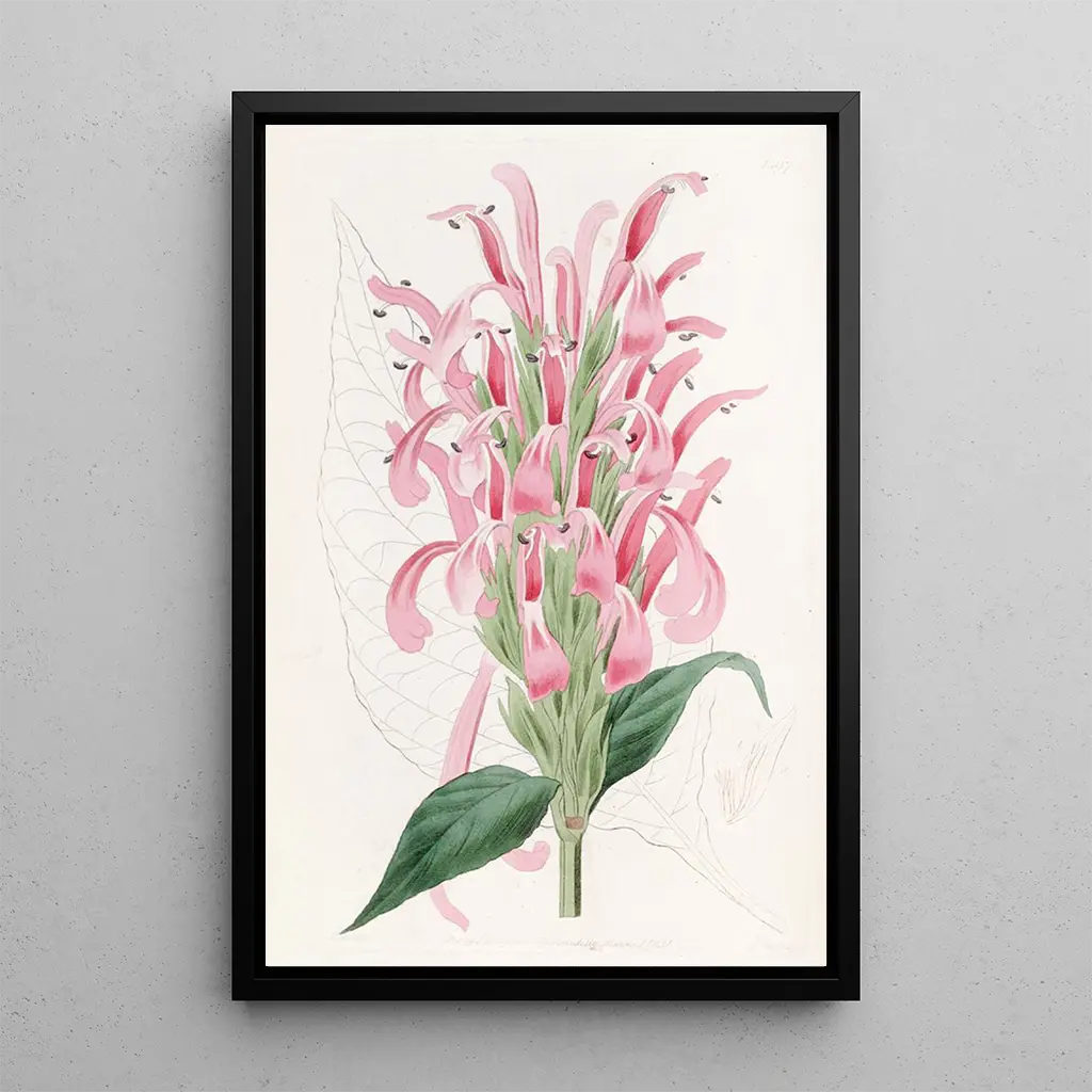 Druk artystyczny obrazu Justicia couleur chair autorstwa Sydenham Edwards przenosi nas w botaniczny świat pełen delikatności i lekkości. Odcienie różu i zieleni harmonijnie się przenikają, tworząc uspokajającą atmosferę. Każdy płatek wydaje się łapać światło, ukazując drobne szczegóły świadczące o uważnej obserwacji natury. Technika akwareli, używana z finezją, pozwala oddać przezroczystość kwiatów, podczas gdy delikatne tło podkreśla piękno form organicznych. To dzieło zachęca do spokojnej kontemplacji, gdzie każdy spojrzenie odsłania nową stronę kwiatowego piękna.