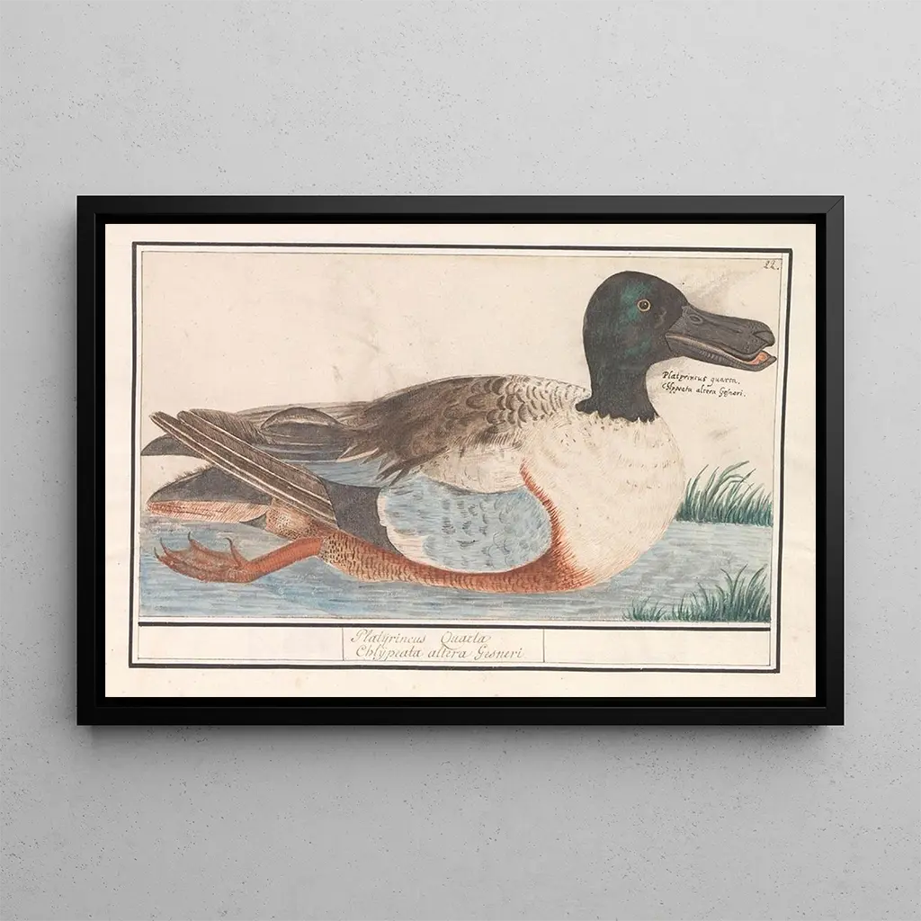 Druk artystyczny "Anas clypeata" autorstwa Anselmusa Botius de Boodt jest prawdziwym hołdem dla ornithologicznego piękna. To dzieło, bogate w szczegóły, oddaje elegancję tego kaczka o charakterystycznym upierzeniu. Delikatne odcienie zieleni i brązu harmonijnie się łączą, podczas gdy tło wodne nawiązuje do spokojnego, naturalnego środowiska. Precyzja linii i finezja tekstur tworzą żywą, niemal namacalną atmosferę, zachęcając widza do podziwiania gracji tego ptaka. To dzieło jest doskonałym przykładem tego, jak sztuka może celebrować faunę i florę.