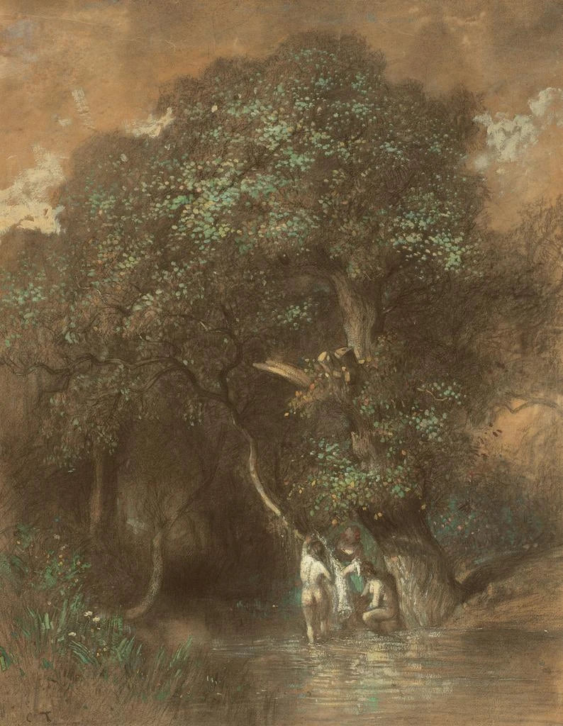 Druk artystyczny Baigneurs près d'un chêne géant - Constant Troyon – Wciągające wprowadzenie
