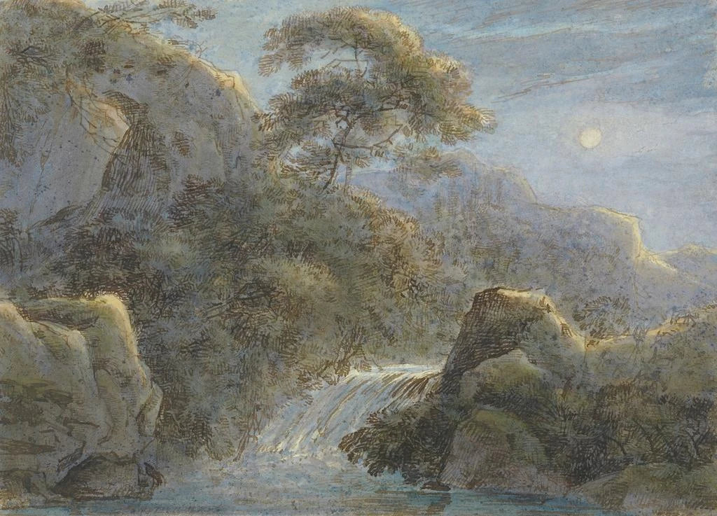 Kaskada w górach w świetle księżyca - Franz Kobell