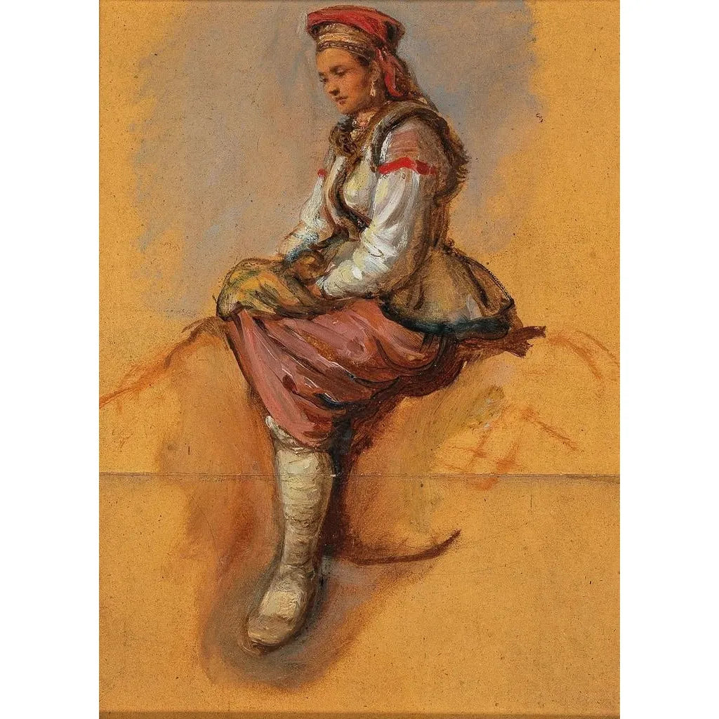 Druk artystyczny obrazu Cavalier mordve przywołuje scenę pełną odwagi i determinacji. Kolory ziemiste, połączone z akcentami czerwieni i niebieskiego, tworzą atmosferę zarówno dynamiczną, jak i poruszającą. Technika artysty, choć tradycyjna, udaje się uchwycić istotę ruchu, ożywiając tego jeźdźca w pełnym biegu. Każdy szczegół, od napiętych mięśni konia po zdecydowane wyrazy twarzy jeźdźca, przyczynia się do wizualnej narracji, która zachęca widza do zanurzenia się w tej minionej epoce, gdzie honor i odwaga były w centrum wartości.