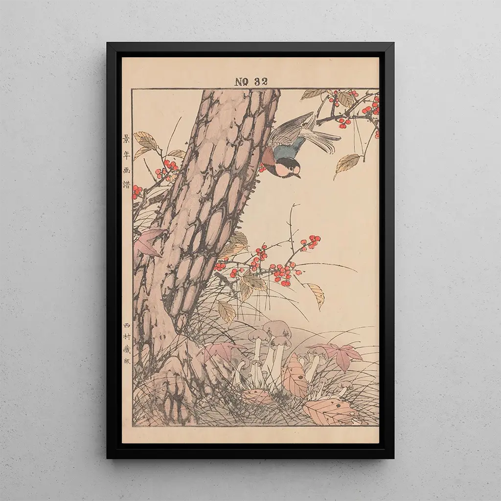 Druk artystyczny Keinen kach gafu Pl035 autorstwa Imao Keinen to dzieło, które zachęca do kontemplacji cudów natury. Dzięki delikatnym odcieniom zieleni i błękitu, przywołuje spokojny pejzaż, w którym fauna i flora kwitną. Technika druku na papierze, charakterystyczna dla japońskiego stylu ukiyo-e, nadaje tej pracy głębię i unikalną fakturę. Drobne szczegóły elementów naturalnych, takich jak ptaki i kwiaty, tworzą kojącą, niemal medytacyjną atmosferę, pozwalając widzowi zanurzyć się w świecie piękna i spokoju.