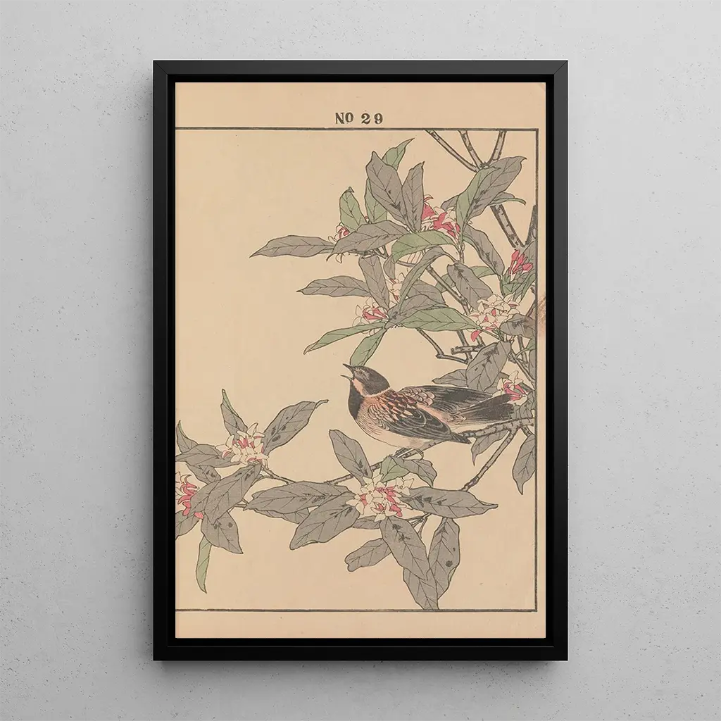 Imao Keinen, aktywny w okresie Meiji, jest uznawany za jednego z mistrzów japońskiego druku artystycznego. Jego dzieło wyróżnia się nowatorskim podejściem, które łączy tradycję z nowoczesnością. Pod wpływem zmian kulturowych swojego czasu, Keinen potrafił uchwycić piękno natury z unikalną wrażliwością. Jego prace, często inspirowane fauną i florą, świadczą o głębokim związku z otoczeniem. Ta reprodukcja oddaje hołd jego wyjątkowemu talentowi i wpływowi na japońskie sztuki, oferując cenny wgląd w jego dziedzictwo.