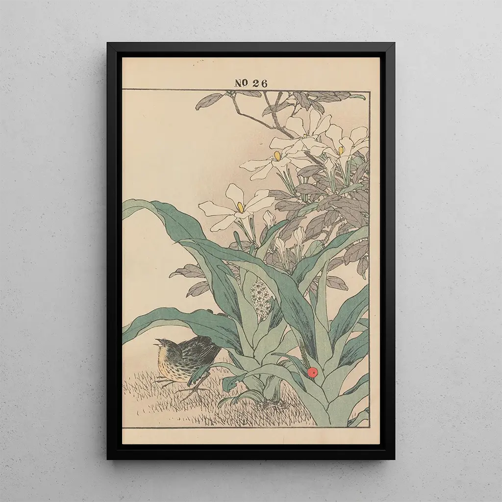 Imao Keinen, actif à la fin du XIXe siècle, est reconnu comme l'un des plus grands maîtres de la estampe japonaise. Son œuvre s'inscrit dans le mouvement ukiyo-e, qui célèbre la beauté des paysages et des scènes de la vie quotidienne. Influencé par les traditions artistiques de son temps, Keinen a su apporter une touche personnelle à ses créations, mêlant réalisme et stylisation. Ses œuvres, dont Keinen kach gafu Pl116, témoignent d'une profonde admiration pour la nature et d'un désir de capturer sa splendeur. À travers ses estampe, il a contribué à faire connaître l'art japonais en Occident, marquant ainsi une étape importante dans l'histoire de l'art.