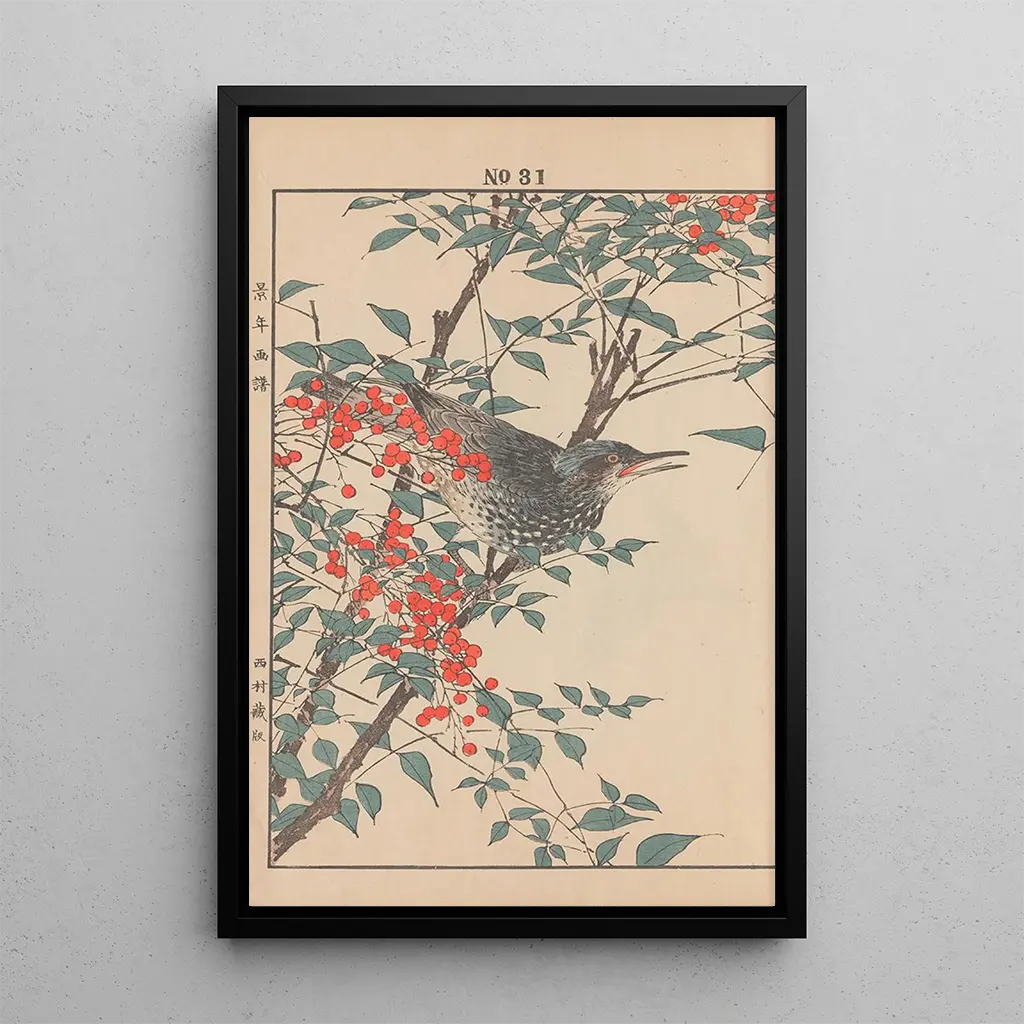 Imao Keinen, wybitny artysta epoki Meiji, umiejętnie łączył tradycję z nowoczesnością w swoich dziełach. Jego charakterystyczny styl, inspirowany mistrzami przeszłości, wyróżnia się wyjątkową precyzją i wyrafinowaną paletą kolorów. Keinen odegrał kluczową rolę w odrodzeniu japońskiej druku artystycznego, wnosząc nową wrażliwość do tego wiekowego sztuki. Jego kreacje, w tym ta reprodukcja, odzwierciedlają epokę, w której sztuka i natura współistniały w doskonałej harmonii, czyniąc go istotną postacią w historii japońskiej sztuki.