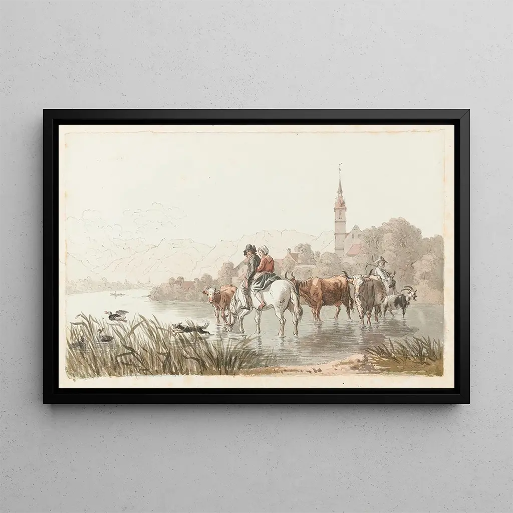 Kirchberg du Sud-Ouest : harmonia między naturą a architekturą Druk artystyczny Kirchberg du Sud-Ouest autorstwa Johanna Jakoba Biedermanna przenosi nas w krajobraz, gdzie natura i architektura spotykają się z gracją. Delikatne odcienie zieleni i niebieskiego harmonijnie się mieszają, tworząc spokojną i kontemplacyjną atmosferę. Technika akwareli, z jej subtelnymi niuansami, ożywia każdy szczegół, od majestatycznych drzew po budynki wtapiające się w tło. Ten obraz wywołuje stan spokoju, który zachęca do marzeń, czyniąc to dzieło prawdziwym wizualnym poematem. Johann Jakob Biedermann : mistrz romantycznego pejzażu Johann Jakob Biedermann, aktywny w XIX wieku, jest znany z pejzaży pełnych romantyzmu. Pod wpływem wielkich mistrzów swojego czasu, potrafił uchwycić piękno szwajcarskich krajobrazów z unikalną wrażliwością. Jego styl, charakteryzujący się zrównoważonymi kompozycjami i subtelną paletą barw, odzwierciedla harmonię między człowiekiem a naturą. Biedermann odegrał kluczową rolę w rozwoju malarstwa pejzażowego w Szwajcarii, pozostawiając po sobie dzieła, które nadal inspirują współczesnych artystów. Dekoracyjny druk artystyczny o wielu zaletach Druk artystyczny Kirchberg du Sud-Ouest to idealny element dekoracyjny do wzbogacenia wnętrza, niezależnie od tego, czy jest to salon, biuro czy sypialnia. Jakość druku i wierne odwzorowanie kolorów oryginału czynią go atrakcyjnym wyborem dla miłośników sztuki. Ten obraz wnosi odrobinę spokoju i elegancji, jednocześnie budząc podziw gości. Dzięki niezaprzeczalnej estetyce, ta płótno jest cennym dodatkiem do każdej kolekcji sztuki, przemieniając przestrzeń w prawdziwy azyl spokoju.