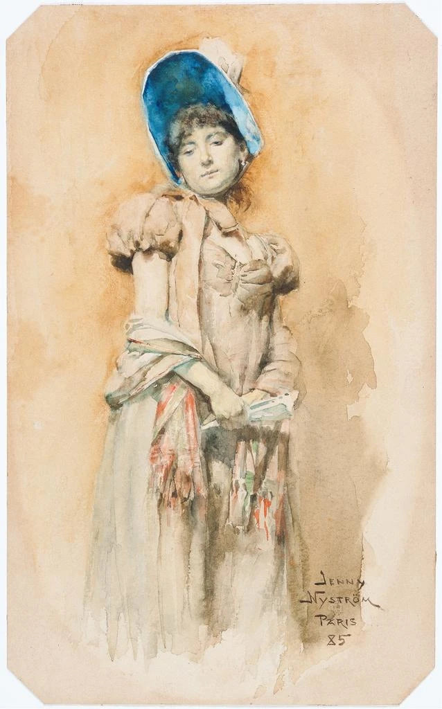 Jenny Nyström, szwedzka artystka XIX wieku, jest znana ze swojego unikalnego stylu łączącego romantyzm i wpływy folklorystyczne. Urodzona w 1854 roku, potrafiła uchwycić piękno codziennych scen, jednocześnie wplatając elementy kultury nordyckiej. Nyström była pod wpływem artystycznych tradycji swojej epoki, ale także wyróżniała się wrażliwością i poetyckim podejściem. Jej dzieła, często pełne nostalgii, świadczą o czasach, gdy sztuka była sposobem na ucieczkę i celebrację wartości tradycyjnych. "Femme en capote" doskonale wpisuje się w tę linię, odzwierciedlając znaczenie kobiety w społeczeństwie jej czasów.