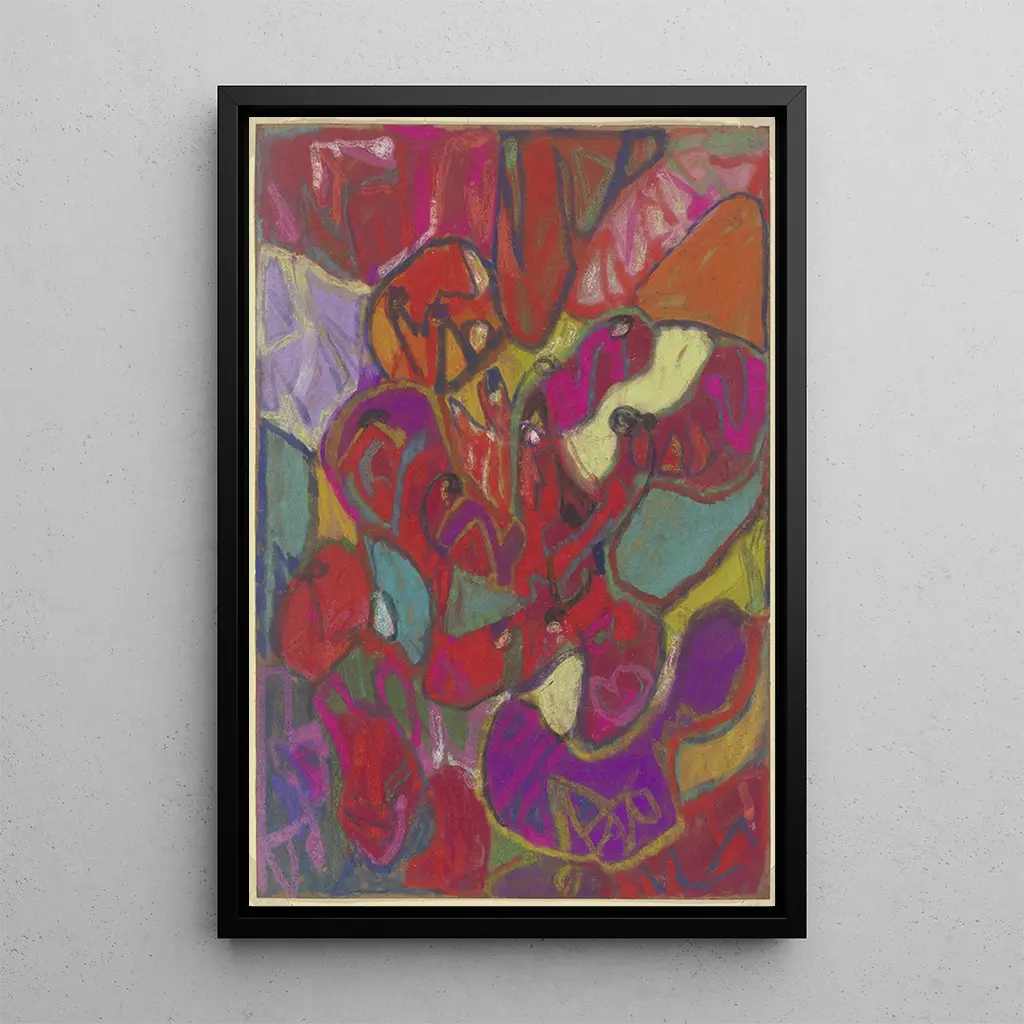 Druk artystyczny kompozycji abstrakcyjnej Adolfa Hölzela zaprasza do zanurzenia się w uniwersum, gdzie geometryczne kształty i żywe kolory splatają się w harmonii. To dzieło, wykonane odważną paletą barw, wywołuje wrażenie ruchu i energii. Płynne linie i organiczne formy tworzą fascynującą dynamikę, podczas gdy odcienie niebieskiego, czerwonego i żółtego odpowiadają sobie nawzajem, dodając głębi wizualnej. Atmosfera emanująca z tego dzieła jest jednocześnie radosna i kontemplacyjna, zachęcając widza do eksploracji relacji między elementami i zanurzenia się w tej poetyckiej abstrakcji.