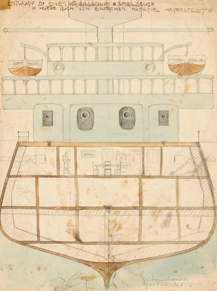 Druk artystyczny | Projekt zabawki okrętu wojennego - Egon Schiele