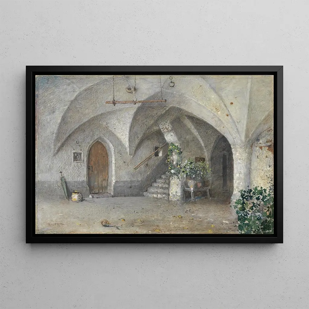 Robert Russ, peintre autrichien du XIXe siècle, est connu pour ses représentations de la vie quotidienne dans les Alpes. Influencé par le mouvement réaliste, il a su capturer des scènes authentiques et émouvantes, mettant en avant la beauté des paysages et des intérieurs montagnards. Son œuvre "Couloir chez le Kantioler à Klausen" illustre parfaitement son style, mêlant détails minutieux et atmosphère chaleureuse. Russ a su immortaliser un mode de vie en voie de disparition, offrant ainsi un précieux témoignage de l'histoire et des traditions alpines.