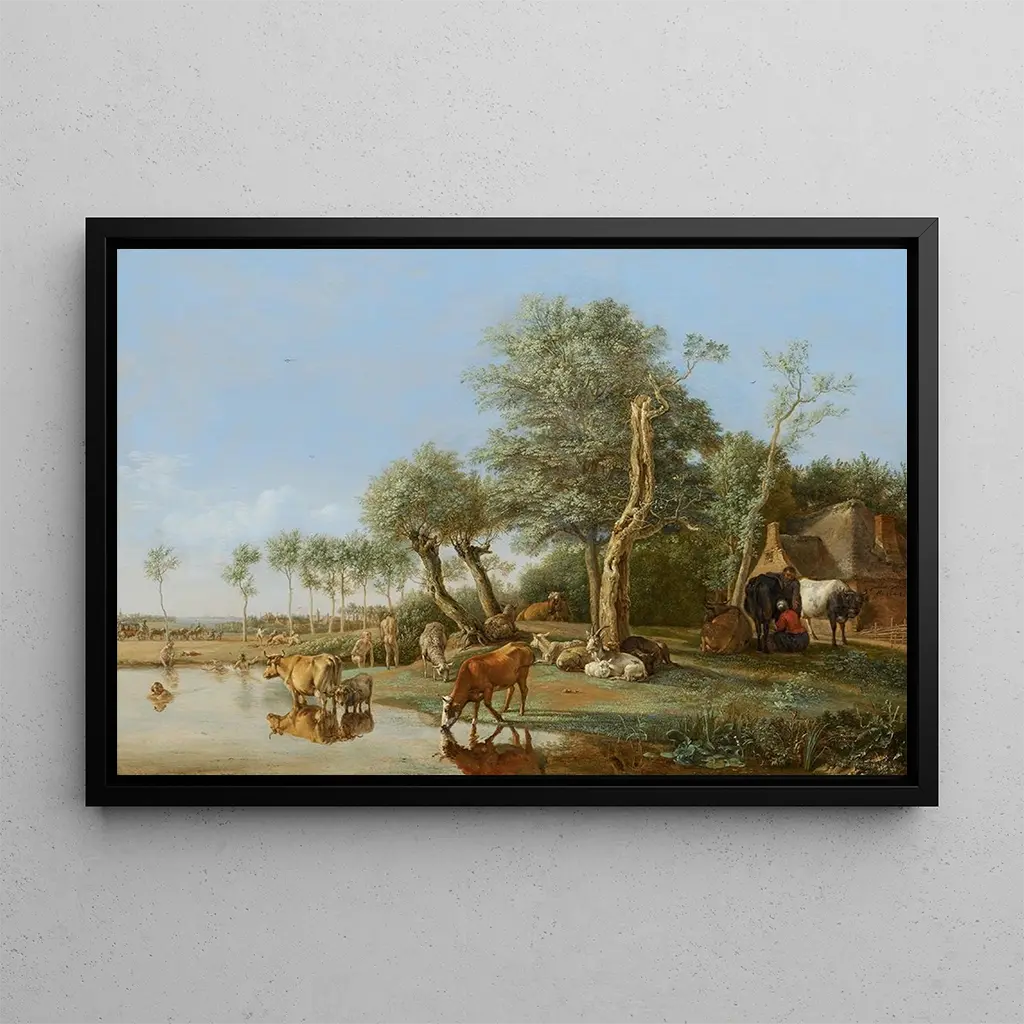 Paulus Potter, holenderski malarz z XVII wieku, jest często uważany za jednego z pionierów gatunku pejzażu zwierzęcego. Jego zdolność do wprowadzania zwierząt do naturalnych krajobrazów zapoczątkowała ewolucję w malarstwie jego epoki. Pod wpływem realizmu i baroku, Potter potrafił tworzyć dynamiczne i żywe kompozycje, w których każdy element wydaje się harmonijnie współgrać. Jego dzieła miały trwały wpływ na kolejne pokolenia artystów, którzy dążyli do uchwycenia piękna życia wiejskiego. "Vaches réfléchies dans l'eau" jest przykładem jego talentu i innowacyjnego podejścia.