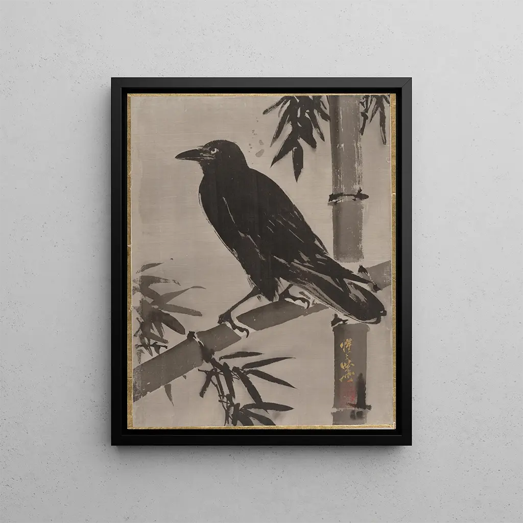 Kruk na gałęzi bambusa - Kawanabe Kyōsai