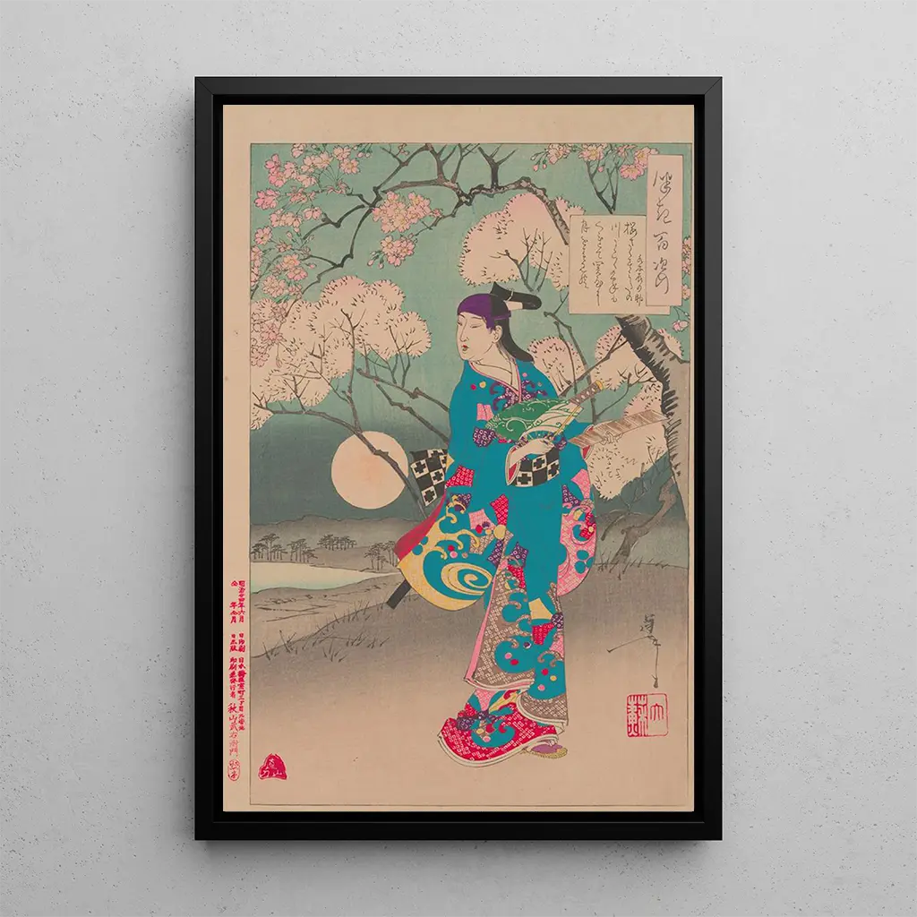 Lune sur la rivière Sumida : un reflet de la beauté éphémère La druk artystyczny de Lune sur la rivière Sumida nous transporte dans une scène nocturne où la lumière de la lune danse sur les eaux calmes de la rivière. Tsukioka Yoshitoshi, avec sa maîtrise du ukiyo-e, réussit à capturer la magie de ce moment fugace. Les teintes argentées et bleutées créent une atmosphère sereine, tandis que les détails des bateaux et des paysages environnants ajoutent une profondeur à la composition. Cette œuvre évoque la beauté éphémère de la nature, invitant le spectateur à contempler la tranquillité d'une nuit japonaise. Tsukioka Yoshitoshi : un pionnier du renouveau artistique japonais Tsukioka Yoshotoshi, actif durant la seconde moitié du XIXe siècle, est reconnu comme l'un des derniers grands maîtres du ukiyo-e. Son œuvre se distingue par une approche innovante, mêlant tradition et influences contemporaines. À une époque où le Japon s'ouvrait au monde, Yoshitoshi a su capturer les changements sociaux tout en préservant l'essence de l'art japonais. Lune sur la rivière Sumida illustre parfaitement son talent pour représenter des scènes de la vie quotidienne avec une sensibilité poétique, faisant de lui une figure incontournable de l'histoire de l'art nippon. Une acquisition décorative aux multiples atouts La druk artystyczny de Lune sur la rivière Sumida est un ajout précieux à votre décoration intérieure, qu'elle soit moderne ou traditionnelle. Ce tableau, avec sa qualité d'impression exceptionnelle, offre une fidélité remarquable aux nuances et aux détails de l'œuvre originale. En l'exposant dans votre salon, bureau ou chambre, vous apportez une touche d'élégance et de sérénité à votre espace. Cette toile, à la fois esthétique et évocatrice, saura captiver vos invités et enrichir votre environnement d'une atmosphère paisible et contemplative.