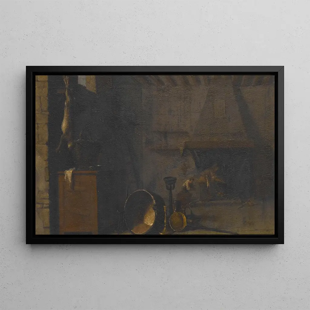 W "Cuisine avec lièvre" Sébastien Bourdon przenosi nas w ciepłą i żywą atmosferę, gdzie detale kulinarne splatają się z harmonijną kompozycją. Ciepłe odcienie, od ziemistych brązów po błyszczące złocienie, oddają bogactwo składników i sztukę gastronomii. Subtelnie manipulowane światło tworzy delikatne cienie, które dodają głębi scenie. Każdy element, od zawieszonego zająca po ceramikę, opowiada historię, zapraszając widza do wyobrażenia sobie tej tętniącej życiem kuchni, gdzie unoszą się aromaty duszonych potraw.