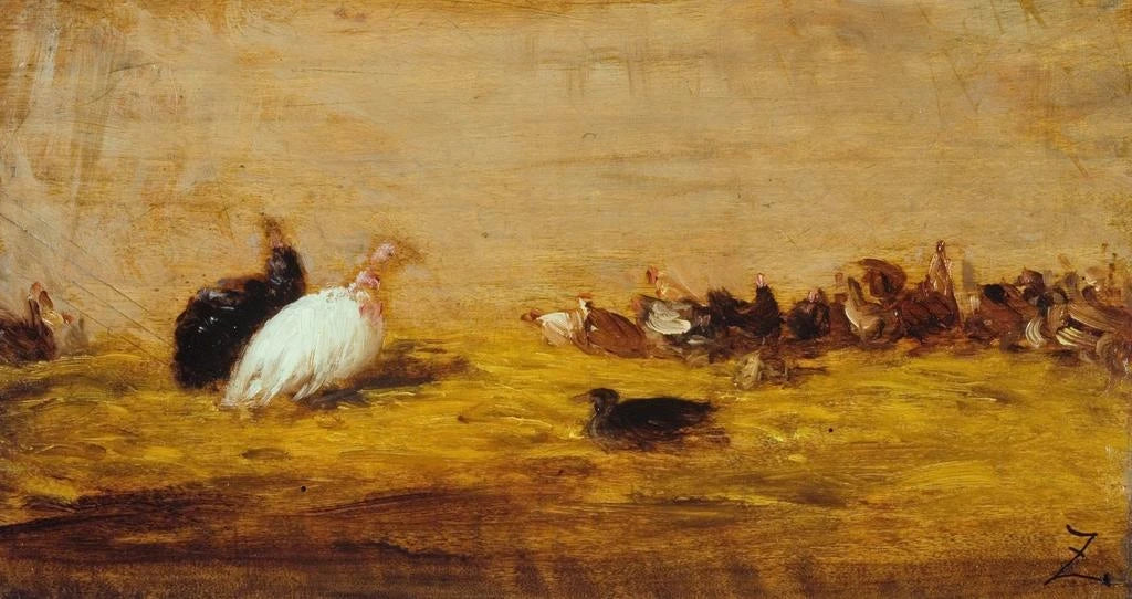Reprodukcja obrazu Les Dindons to idealny element dekoracyjny, który upiększy Twój salon, biuro lub sypialnię. Jakość druku zapewnia niezwykłą wierne oddanie szczegółów i kolorów oryginalnego dzieła, dodając elegancji Twojemu wnętrzu. Ten druk artystyczny, z jego niezaprzeczalnym walorem estetycznym, wzbudza podziw i ciekawość, jednocześnie tworząc ciepłą i przyjazną atmosferę. Wybierając tę reprodukcję, dodajesz do swojej kolekcji nie tylko dzieło sztuki, ale także element rozmowy, który wzbogaca Twoją przestrzeń życiową.