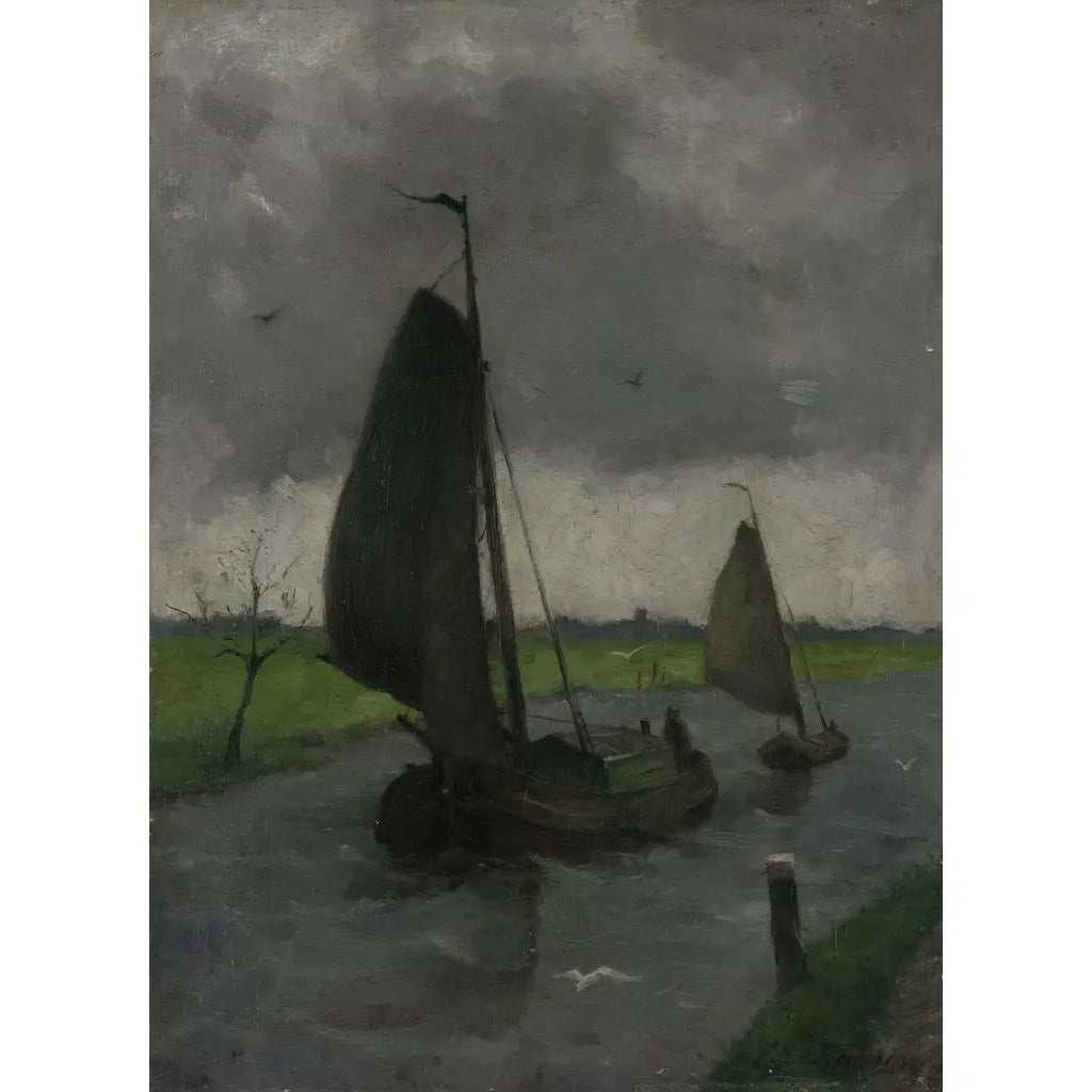 Eduard Karsen, actif à la fin du XIXe siècle, est un artiste néerlandais reconnu pour ses paysages évocateurs. Influencé par les traditions artistiques de son pays, il a su capturer la beauté des scènes rurales avec une sensibilité unique. Son style, qui mêle éléments réalistes et touches impressionnistes, reflète une profonde connexion avec la nature. Karsen a souvent exploré les thèmes de l'eau et de la lumière, rendant hommage à la beauté des paysages néerlandais. Son œuvre a contribué à la renommée du paysage hollandais, le plaçant parmi les artistes importants de son époque.