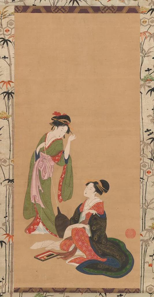 Druk artystyczny | Kurtyzany parodiujące Kanzan i Jittoku - Katsushika Hokusai