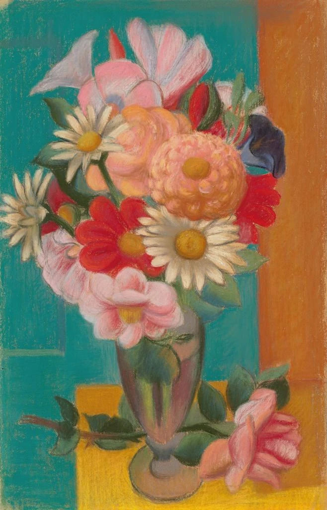 Mark Gertler, artiste britannique d'origine juive, a marqué le début du XXe siècle avec son style unique, fusionnant le cubisme et l'expressionnisme. Né en 1891 à Londres, il a été influencé par des artistes tels que Vanessa Bell et Duncan Grant, membres du groupe Bloomsbury. Gertler a su capturer l'essence de son époque, explorant des thèmes de la vie moderne tout en intégrant des éléments de la tradition artistique. Sa carrière, bien que tragiquement écourtée par sa mort en 1939, a laissé une empreinte indélébile sur le paysage artistique britannique, et "Fleurs dans un Vase" en est un parfait exemple, témoignant de son talent et de son innovation.