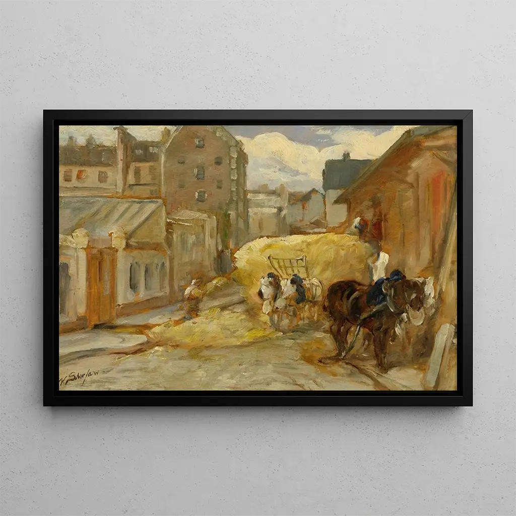 La Charrette de foin : une scène bucolique empreinte de sérénité La Charrette de foin, œuvre emblématique de Walter Shirlaw, dépeint une scène rurale où la nature et l'homme cohabitent en harmonie. Les couleurs chaudes et terreuses dominent la toile, évoquant la chaleur d'une journée d'été. La technique de Shirlaw, qui mêle habilement le réalisme et une touche impressionniste, donne vie à chaque détail, des brins d'herbe aux visages des personnages. L'atmosphère paisible qui se dégage de cette œuvre invite à la contemplation, transportant le spectateur dans un monde où le temps semble suspendu, loin des tumultes de la vie moderne. Walter Shirlaw : un maître du paysage américain Walter Shirlaw, peintre d'origine écossaise, a su capturer l'essence des paysages américains au XIXe siècle. Influencé par les grands maîtres européens, il a développé un style unique qui allie réalisme et impressionnisme. Shirlaw a été un membre actif de la scène artistique de son époque, participant à de nombreuses expositions et contribuant à la reconnaissance du paysage américain. Son œuvre, La Charrette de foin, illustre parfaitement son talent pour représenter la beauté de la nature et la vie rurale, tout en témoignant de l'évolution artistique qui marquait son époque. Une acquisition décorative aux multiples atouts Opter pour la reproduction de La Charrette de foin, c'est choisir une toile qui apportera une touche de charme et de sérénité à votre intérieur. Que ce soit dans un salon, un bureau ou une chambre, cette œuvre s'intègre harmonieusement dans divers styles de décoration. Sa qualité de reproduction garantit une fidélité aux couleurs et aux détails de l'original, tout en offrant un attrait esthétique indéniable. En ajoutant ce tableau à votre collection, vous créez un espace accueillant et inspirant, où chaque regard posé sur cette scène bucolique évoque la paix et la beauté de la nature.