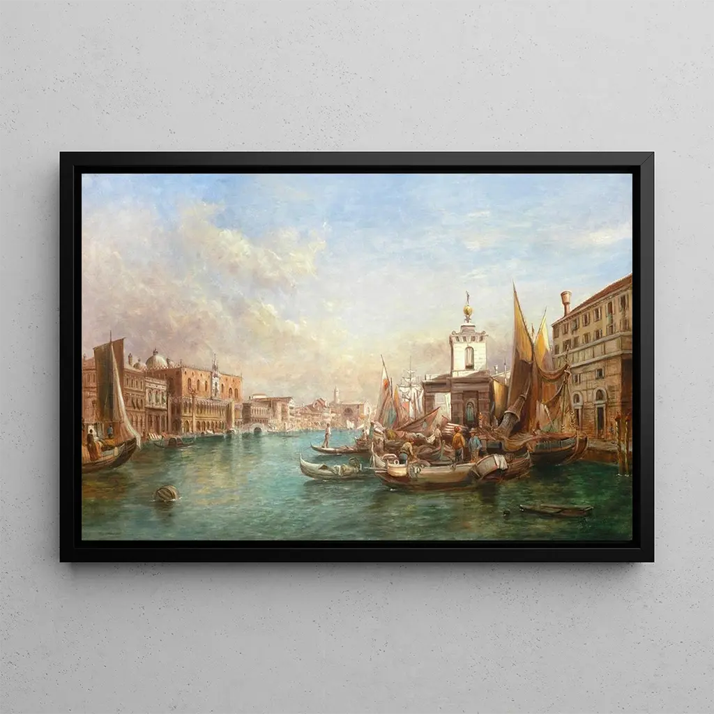 La Dogana, ikoniczne dzieło Alfreda Pollentine'a, przenosi widza w serce Wenecji, gdzie tętniące życiem nabrzeża i piękno budynków harmonijnie się przeplatają. Żywe kolory, od głębokich błękitów po ciepłe ochry, tworzą dynamiczną i przyjazną atmosferę. Technika artysty, który używa delikatnych pociągnięć pędzla i drobiazgowych detali, ożywia tę scenę morską. Żagle łodzi dumnie się unoszą, podczas gdy przechodnie zajęci są codziennymi sprawami, wszyscy zanurzeni w codziennym życiu miasta, gdzie handel i sztuka się spotykają.