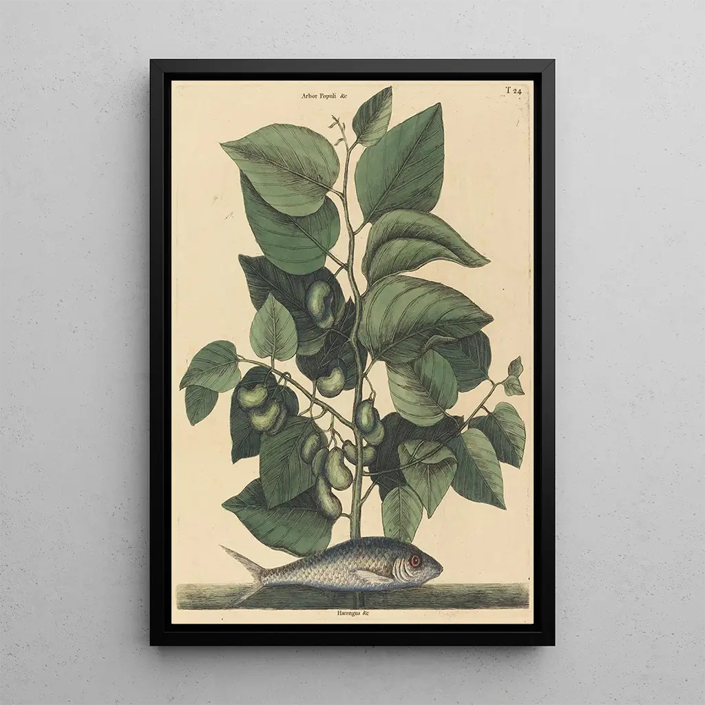 La reprodukcja La Sardine Argentina carolina autorstwa Marka Catesby przenosi nas w fascynujący świat życia morskiego. To dzieło, wykonane z niezwykłą precyzją, podkreśla delikatne szczegóły sardynki, jej błyszczące łuski oraz odcienie niebieskiego i srebrnego. Technika akwareli użyta przez Catesby nadaje obrazowi lekkość i przejrzystość, nawiązując do płynności wody. Ogólna atmosfera obrazu jest jednocześnie uspokajająca i pełna życia, zachęcając widza do zgłębiania głębin morskich i doceniania piękna natury.