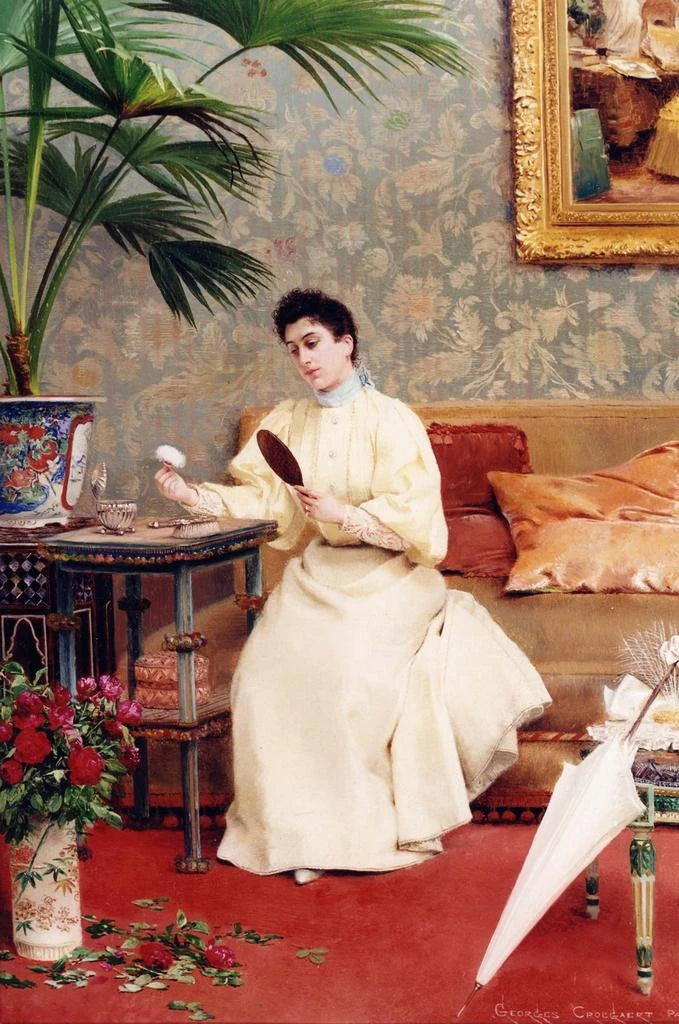 Georges Croegaert, actif à la fin du XIXe siècle, est un artiste belge reconnu pour ses représentations de la vie quotidienne et de la beauté féminine. Influencé par le mouvement réaliste, il a su allier une technique précise à une sensibilité esthétique unique. Ses œuvres, souvent empreintes de romantisme, témoignent d'une époque où l'art cherchait à capturer l'essence de la vie moderne tout en célébrant la beauté classique. Croegaert a su se faire une place parmi les grands maîtres de son temps, et "La toilette" est un parfait exemple de son talent et de son engagement envers la représentation de la femme.