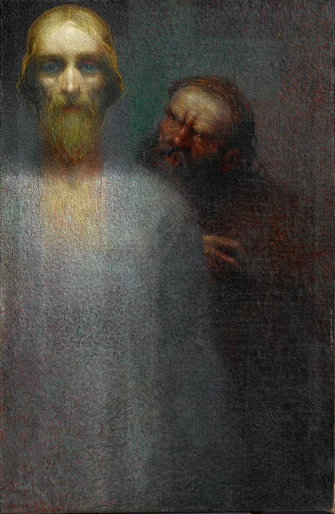 Noel Quintavalle, actif au début du XXe siècle, s'inscrit dans un mouvement artistique où le réalisme rencontre le symbolisme. Sa formation et ses voyages à travers l'Europe ont enrichi son style, lui permettant d'explorer des thèmes profonds et universels. L'art de Quintavalle se distingue par sa capacité à traduire des récits bibliques en images puissantes, tout en s'inspirant des maîtres anciens. « La trahison du Christ » est un exemple frappant de son talent à évoquer des émotions complexes et à engager le spectateur dans une réflexion sur la nature humaine et la spiritualité.