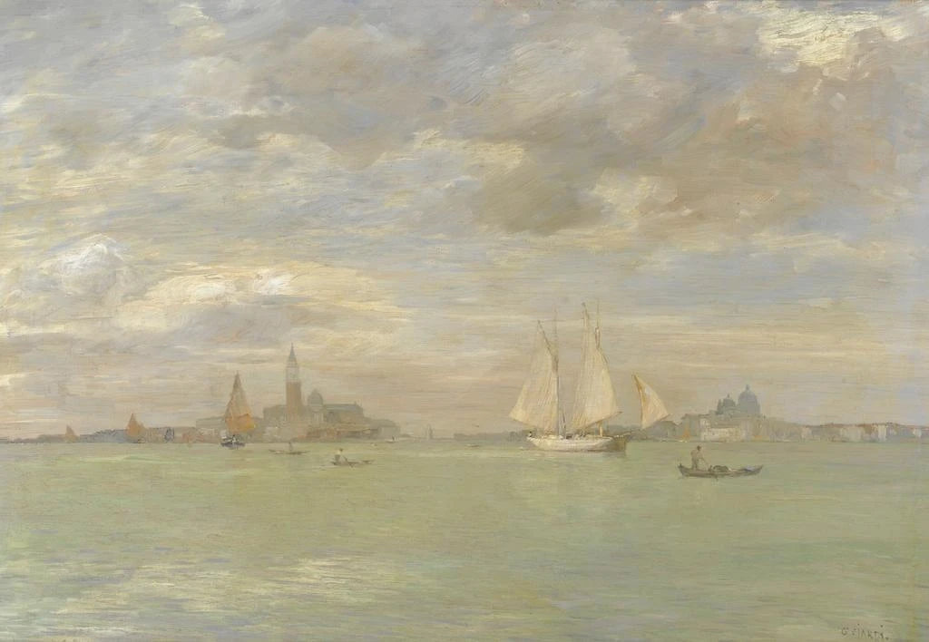 Guglielmo Ciardi, urodzony w 1842 roku, jest włoskim malarzem, którego twórczość wpisuje się w nurt impresjonistyczny. Wykształcony w Akademii Sztuk Pięknych w Wenecji, był pod wpływem pejzaży weneckich i światła śródziemnomorskiego. Jego kariera trwała do końca XIX wieku, okresu, w którym Wenecja przeżywała odrodzenie artystyczne. Ciardi potrafił uchwycić esencję swojego rodzinnego miasta, łącząc tradycję z nowoczesnością. Jego dzieła są dziś cenione za zdolność wywoływania głębokich emocji i ponadczasową urodę.