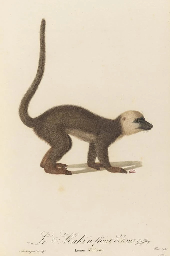 Jean-Baptiste Audebert, actif au début du XIXe siècle, est reconnu pour ses contributions significatives à la reproduction zoologique. Influencé par les découvertes scientifiques de son époque, il a su allier art et science, rendant hommage à la biodiversité. Ses œuvres, souvent inspirées par des expéditions lointaines, témoignent d'un profond respect pour la nature. Audebert a joué un rôle crucial dans la documentation des espèces animales, et son travail a eu un impact durable sur l'art naturaliste. Le Maki front blanc est un exemple parfait de son talent et de son engagement envers la représentation fidèle de la faune.