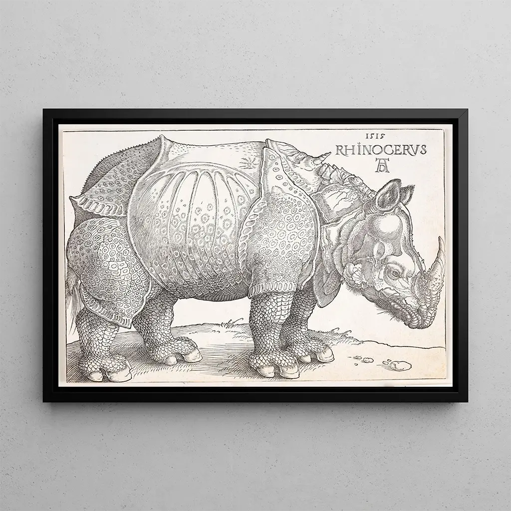 Druk artystyczny Rhinocéros autorstwa Albrechta Dürera to ikoniczne dzieło, które przyciąga uwagę swoim uderzającym realizmem i dbałością o szczegóły. Wykonany w 1515 roku, ten drzeworyt przedstawia nosorożca, egzotyczne i tajemnicze zwierzę dla tamtych czasów, z bogatą teksturą i delikatnymi cieniami, które ożywiają scenę. Precyzyjne linie i kontrasty światła i cienia tworzą atmosferę zarazem majestatyczną, jak i intrygującą, zachęcając widza do zastanowienia się nad naturą tego fascynującego stworzenia. Kompozycja, choć statyczna, przekazuje wrażenie siły i potęgi, jednocześnie ukazując ciekawość artysty wobec świata naturalnego.