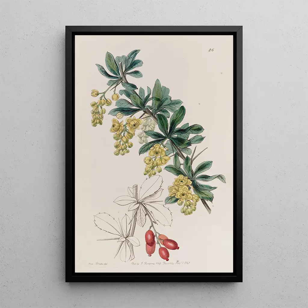 Druk artystyczny "L'Épine-Vinette des Tanneurs" autorstwa Sydenham Edwards wyróżnia się delikatnym i szczegółowym przedstawieniem tej odpornej rośliny. Bogate odcienie zieleni i żółci, podkreślone akcentami czerwieni, tworzą żywy obraz, który odzwierciedla siłę natury. Technika akwareli używana przez Edwards pozwala uchwycić teksturę liści i kształt jagód, czyniąc dzieło zarówno realistycznym, jak i poetyckim. Atmosfera emanująca z tej płótna jest pełna spokoju, zachęcając widza do docenienia piękna elementów często pomijanych w świecie natury.