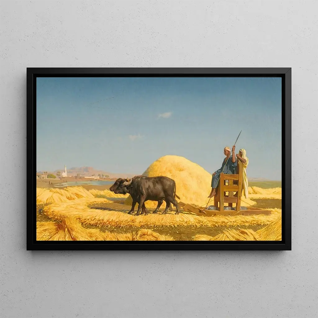 Artysta stojący za Les batteurs de grain en Égypte, The Grain Threshers Egypt, wpisuje się w artystyczną tradycję sięgającą kilku tysięcy lat wstecz. Starożytny Egipt, z jego symboliką i wyrafinowanymi technikami, wpłynął na wielu artystów na przestrzeni wieków. Egipskie freski, często pełne znaczeń religijnych i kulturowych, potrafiły uchwycić istotę codziennego życia i wierzeń tej fascynującej cywilizacji. Koncentrując się na tematach rolniczych, artysta podkreśla znaczenie rolnictwa w społeczeństwie egipskim, jednocześnie oddając hołd starożytnej wiedzy, która nadal inspiruje.