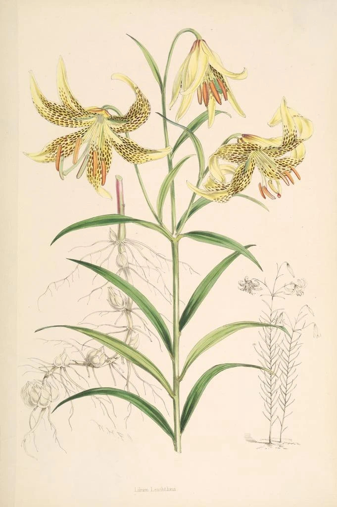 Walter Hood Fitch, urodzony w Szkocji, jest pionierem druk artystyczny w dziedzinie ilustracji botanicznej w XIX wieku, cenionym za umiejętność łączenia nauki i sztuki. Jego wykształcenie w École des beaux-arts w Londynie oraz praca w ogrodach botanicznych pozwoliły mu wykształcić unikalny styl, łączący rygor naukowy z wrażliwością estetyczną. Fitch zilustrował tysiące roślin, w tym Lilium Leichtlinii, przyczyniając się do dokumentacji flory światowej. Jego dziedzictwo trwa, inspirując wielu współczesnych artystów i botaników dzięki jego dokładnemu i pasjonującemu podejściu.