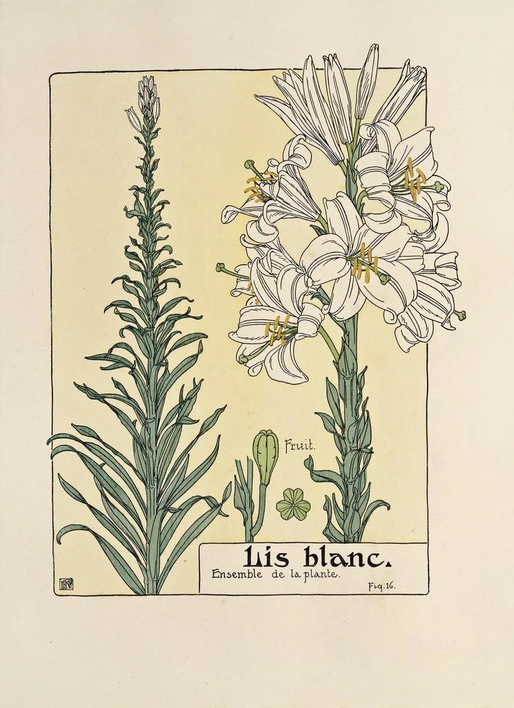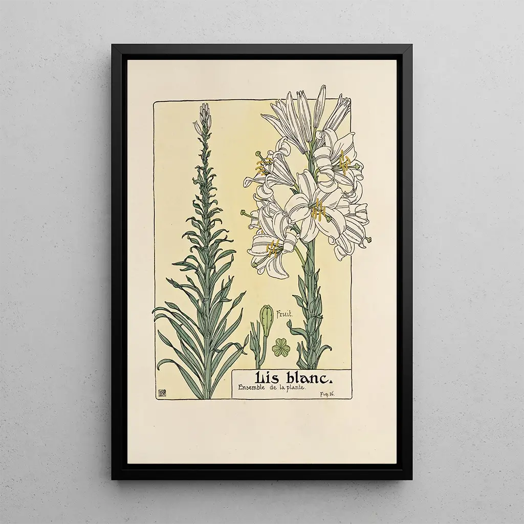 Obraz Lis blanc autorstwa Maurice'a Pillarda Verneuila ukazuje delikatną harmonię między naturą a sztuką. Płatki o jaskrawobiałym odcieniu wyróżniają się na subtelnie zróżnicowanym tle, tworząc uderzający kontrast. Technika artysty, łącząca akwarelę i olej, nadaje dziełu szczególną jasność, niemal eteryczną. Atmosfera emanująca z tej płótna zachęca do kontemplacji, do odkrywania drobnych szczegółów składających się na każdą kwiatową kompozycję. Odmiany zieleni liści dodają odrobinę świeżości, podczas gdy zrównoważona kompozycja kieruje wzrok przez całość dzieła.