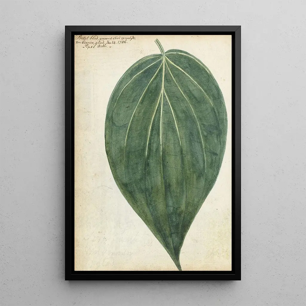 La reproduction de la "Feuille de bétel" est un choix parfait pour apporter une touche de nature à votre décoration intérieure. Que ce soit dans un salon, une cuisine ou un bureau, cette toile saura séduire par sa qualité d'impression et sa fidélité aux détails de l'œuvre originale. Son attrait esthétique et sa palette de couleurs vibrantes en font un élément décoratif qui attire le regard et suscite la curiosité. En intégrant cette œuvre dans votre espace, vous créez une ambiance chaleureuse et accueillante, tout en rendant hommage à l'art de la nature morte et à la beauté des éléments simples de la vie quotidienne.