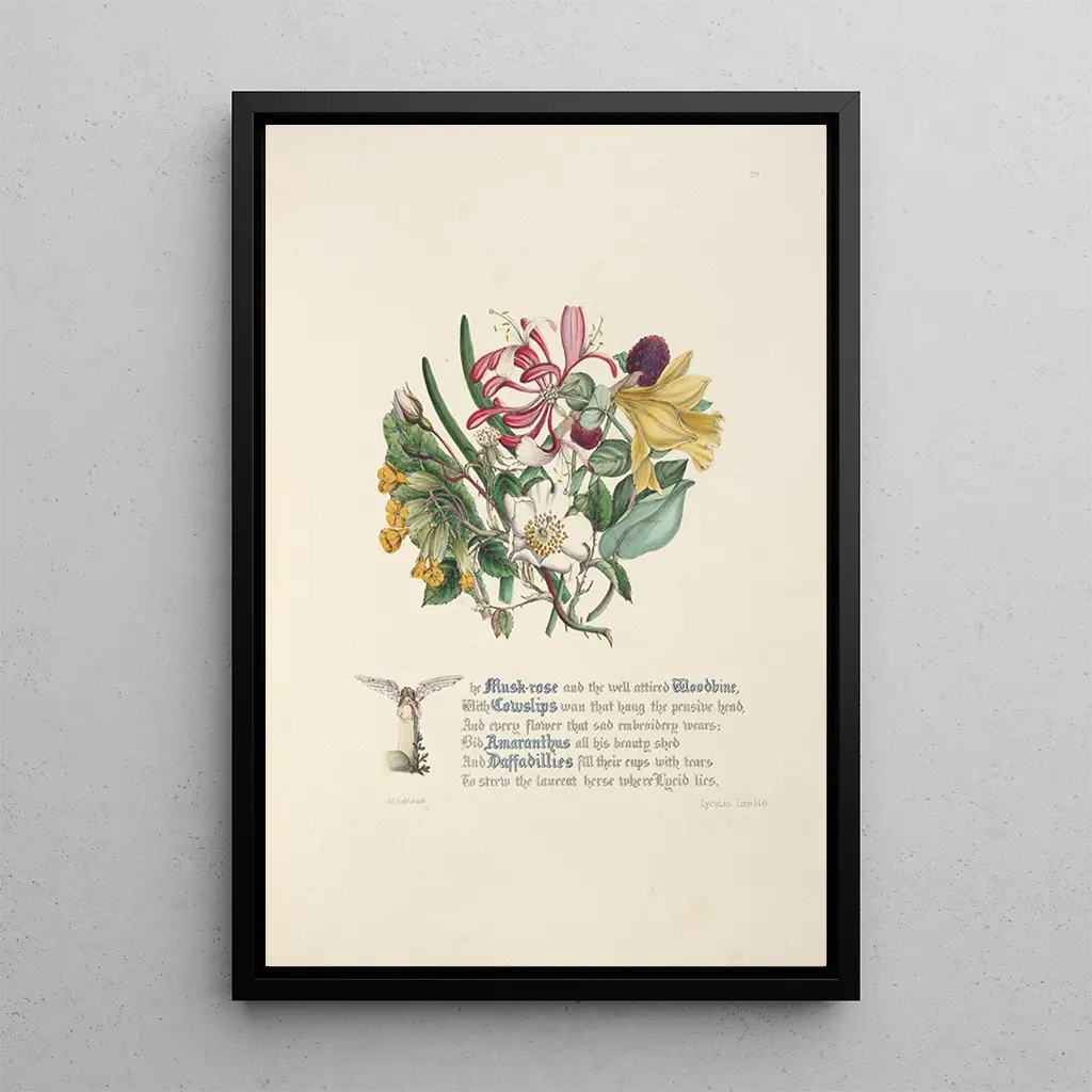 „Lycidas” to poruszające dzieło, które wywołuje melancholię i ulotną piękność życia. Jane Elizabeth Giraud prezentuje paletę delikatnych i subtelnych kolorów, tworząc atmosferę marzenia i nostalgii. Kompozycja, skoncentrowana na postaci w kontemplacji, zachęca widza do głębokiego połączenia z emocjami ludzkimi. Drobne szczegóły elementów naturalnych otaczających ją wzmacniają wrażenie kruchości i przemijalności, czyniąc ten druk artystyczny prawdziwą hołd dla piękna i pamięci.