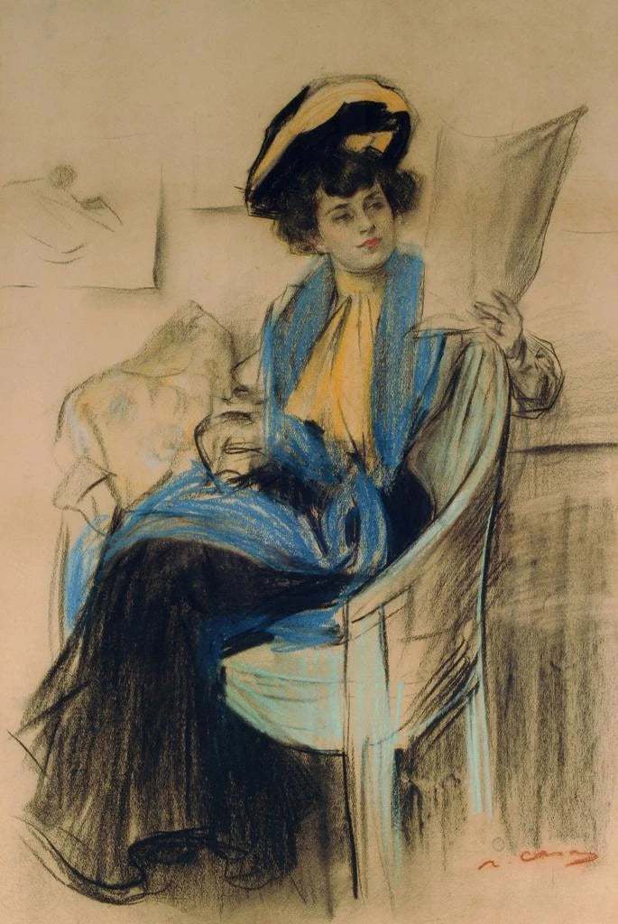 „Mademoiselle CloClo” autorstwa Ramona Casasa to żywe dzieło, które oddaje pełen energii duch swojego modela. Dynamiczna kompozycja i jaskrawe kolory wprowadzają szczególną energię do tego portretu. Poza tym, postawa młodej kobiety, jednocześnie swobodna i pełna uroku, ukazuje żywą i ujmującą osobowość. Drobne szczegóły, od rysów twarzy po teksturę ubrań, świadczą o umiejętności Casasa w uchwyceniu nie tylko wyglądu, ale także istoty swojego modela. Ten obraz zachęca do zanurzenia się w świat pięknej epoki, gdzie moda i sztuka harmonijnie się przenikały.