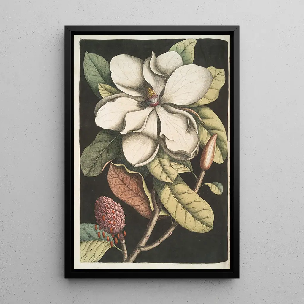Mark Catesby, naturaliste et artiste du XVIIIe siècle, a joué un rôle essentiel dans la documentation de la flore et de la faune américaines. Ses œuvres, réalisées lors de ses voyages en Amérique, sont marquées par un style précis et scientifique, tout en conservant une sensibilité artistique. Catesby a été influencé par les traditions européennes d’illustration, mais il a su intégrer une vision unique de la nature américaine. Son travail, dont la reproduction de Magnolia altissima fait partie, est considéré comme un jalon dans l’histoire de l’art botanique, alliant science et esthétique.